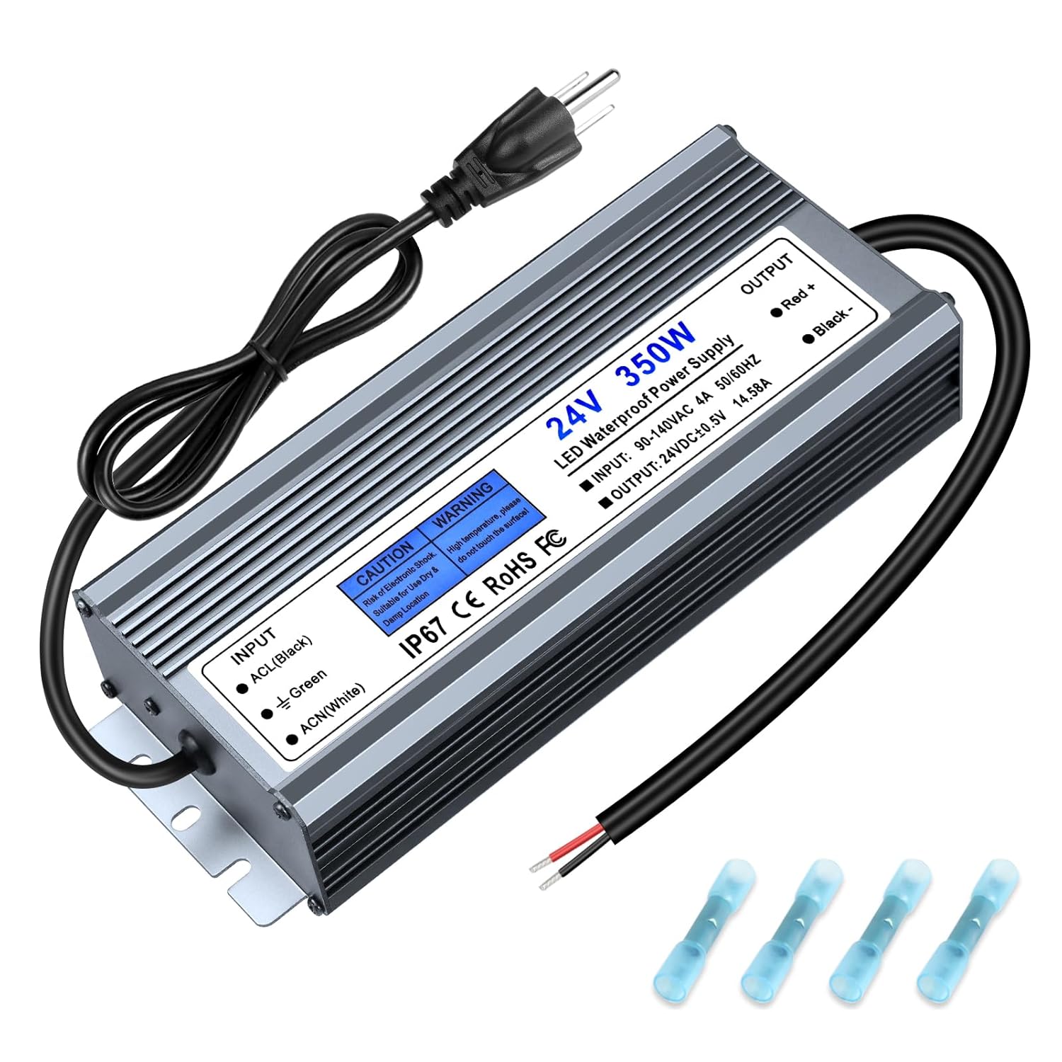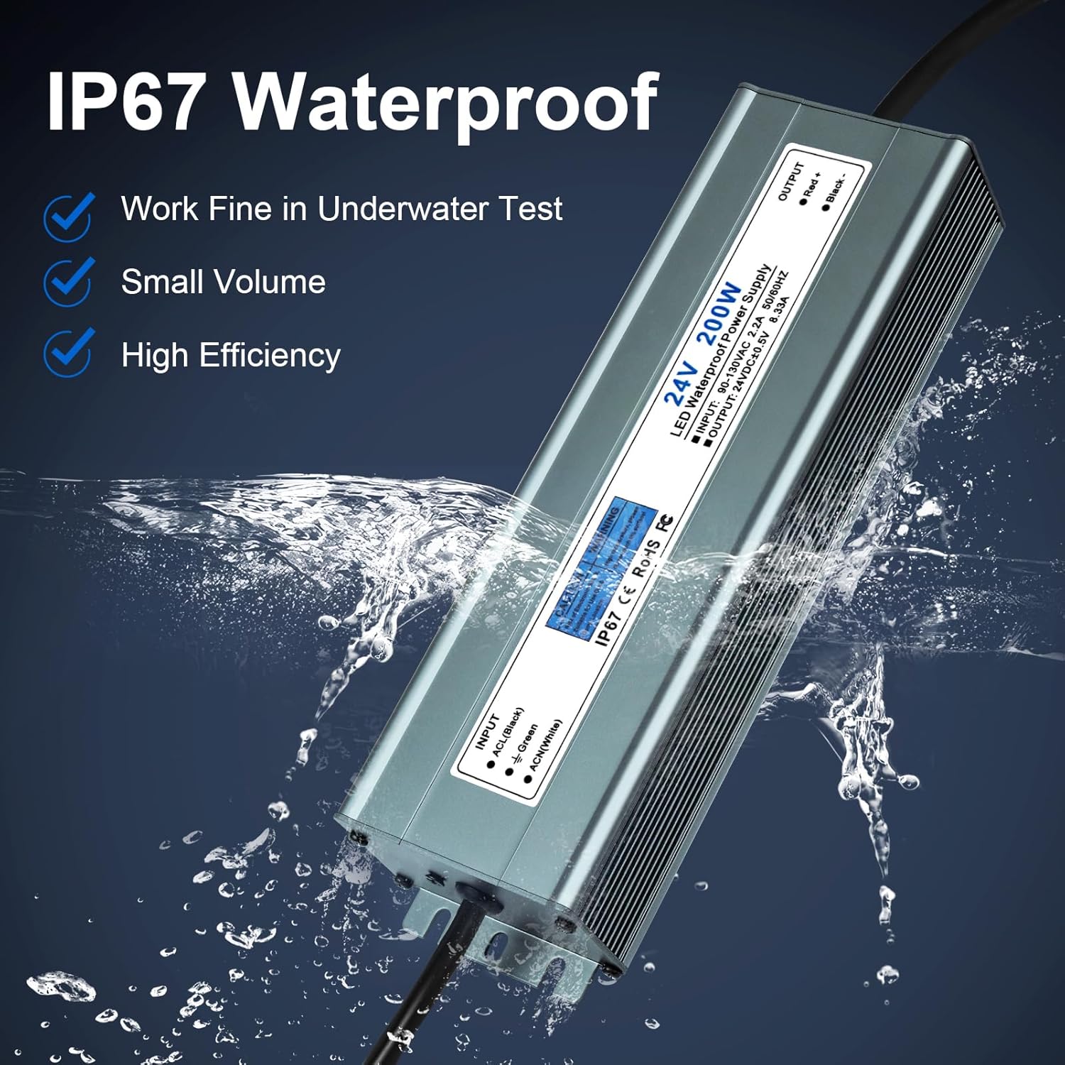 Features: *Constant voltage style power supply; *Universal AC input/ Full range; *Small volume, low weight, high efficiency; *Cooling by free air convection; *Fully encapsulated with IP67 level; *100% full load burn-in test. Specifications: *Input: 90-140V AC 50/60HZ *Output: 24V DC 20.83A *Wattage: 500W *Waterproof: IP67 *Input Efficiency: 85% *Working Temperature: -10℃ to 60℃ Warm Tips: *Please note that the total wattage of LED strip lights or other items should not exceed the max wattage (500W) of this LED Light Strip Power Supply. *Don' t open or modify the LED Power Supply. *Please leave children & kids far away from High Voltage Power Source. *Please use it under professional electrician' s guides. *The LED driver is NOT dimmable, which is only compatible with RGB dimmers. If you have any problem of our product, you can click “seller contact” button in your Amazon account to email us. We would be delighted to help you and reply you as soon as we can.