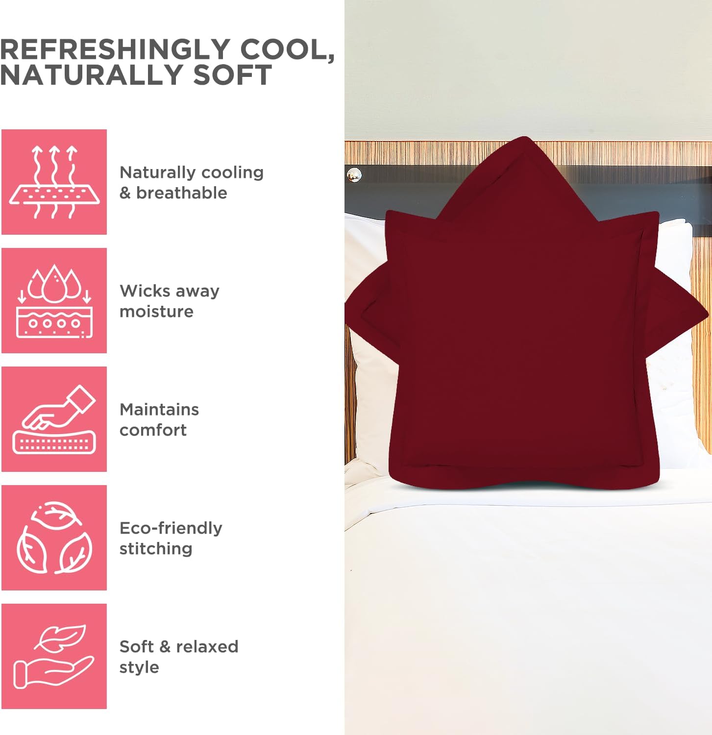 European Square Set of 2 Pillow Shams 1000 Thread Count Hotel Quality 100% Egyptian Cotton Cushion Cover, Super Soft & Breathable, Decorative Pillowcases (Burgundy, Euro Size 24''x24'')