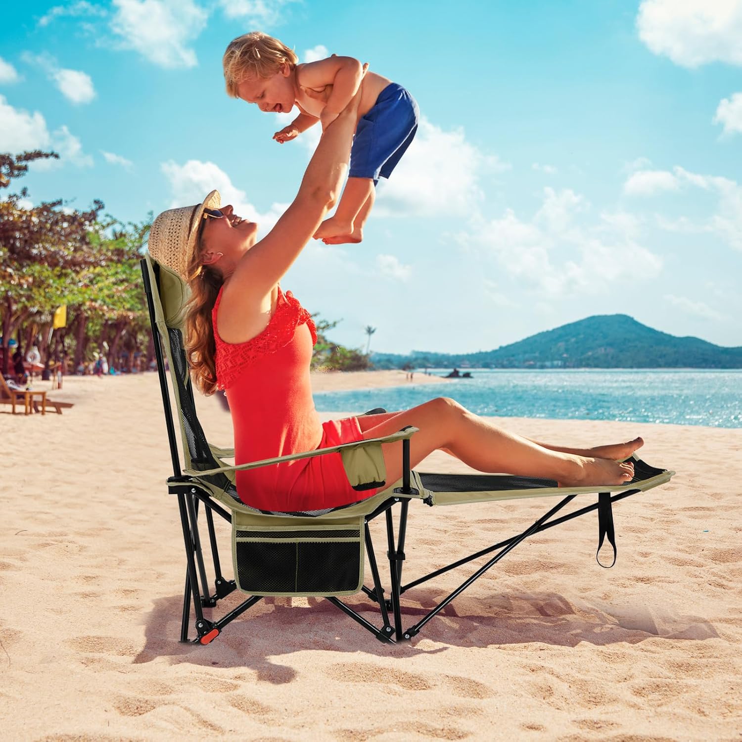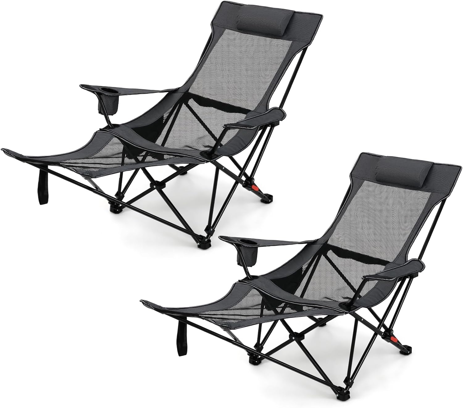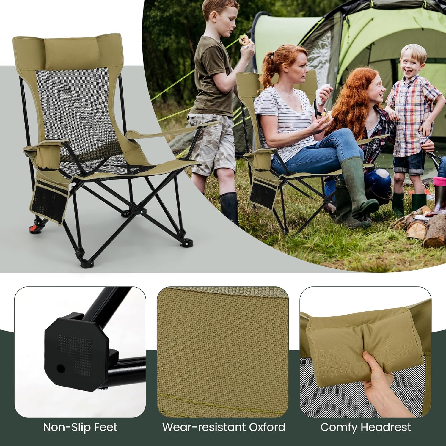 Description:Are you looking for the ultimate outdoor companion for your camping, fishing, or beach adventures? Our foldable reclining camping chair is the perfect solution! This foldable reclining camping chair features a 2-in-1 design with a detachable footrest, allowing you to customize it to your needs. It has a 4-position adjustable backrest and a comfy headrest for ultimate relaxation. The chair also offers ample storage space with practical cup holders and side mesh pockets. When not in use, this camping chair folds down to a compact size and fits neatly into the included carry bag, so you can take it anywhere you want. From camping trips to fishing expeditions or beach parties, this lightweight mesh recliner is your go-to for versatile and comfortable outdoor seating.Features:Detachable footrest makes the reclining chair converts to a regular chair4-position adjustable backrest for optimal relaxationComfy headrest supports your head and neckCup holders keep beverages within easy reachSide mesh pockets store small items convenientlyFolds compactly into the included carry bag for easy portabilityIdeal for camping, fishing, and beach parties600D oxford fabric is high-strength and ensures durabilitySturdy metal tubes and anti-slip feet provide a 330 lbs load capacitySpecifications:Color: Gray/GreenMaterial: Oxford Cloth, Mesh, MetalReclining Dimension with Footrest: 60" x 32.5" x 29.5" (L x W x H)Dimension without Footrest(Upright): 32.5 " x 25" x 34.5" (L x W)Footrest Height: 20"(L x W)Net Weight: 8.5 lbsMax Load: 330 lbsPackage Includes:1 x Camping Chair1 x Carrying Bag1 x User Guide