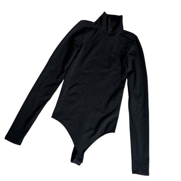 Theory Taceturtleneck Tubular Long Sleeve Black Bodysuit with Thumbholes Turtleneck Womens XS
