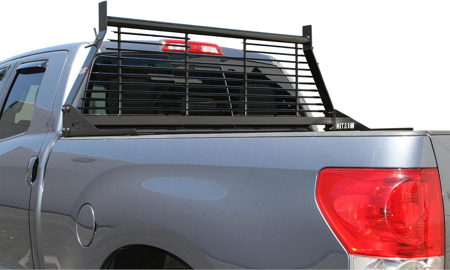 HDX Commercial Grade Headache Rack protects your rear window from potential damage from shifting cargo. Welded tie-off hooks for securing your load are standard on all applications. Angled louvers keep sunlight out the cab cool and prevent UV damage to your interior all while allowing unobstructed visibility. 4 mount tabs give you the option of adding safety lights or accessories. Accommodates all major brand tool boxes. 2 diameter round top tube makes it easy to slide ladders