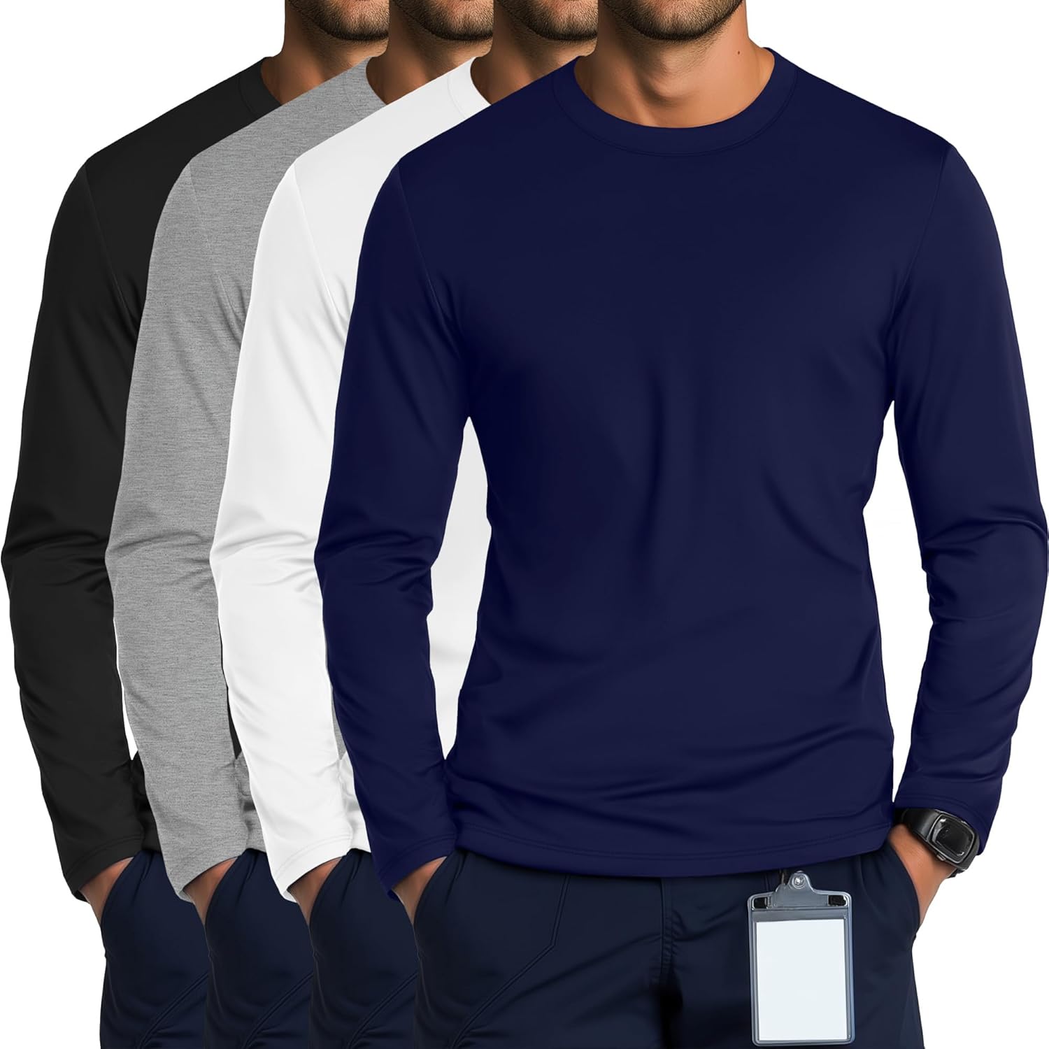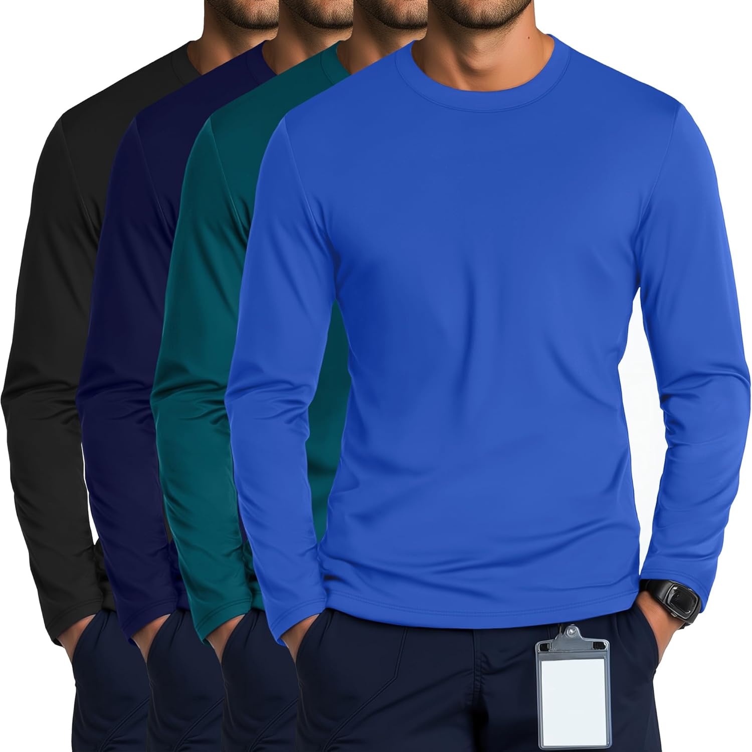 Features: These men's scrubs are your thoughtful present choice, ideal for yourself or as a birthday, anniversary, or holiday present for your friends These long sleeve shirts for men come in a variety of different sizes, so you can choose the size that suits your body shape. Specifications: Material: 65% Cotton, 30% Polyester, 5% Spandex Package includes: 4 x Men's scrubs Notes: Manual measurement, please allow slight errors in size. The color may have a slight difference due to different screen displays