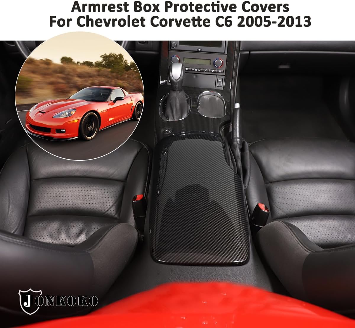 ABS Car Interior Center Armrest Box Trim Cover Console Box Protect Cover for Chevrolet Corvette C6 2005-2013 Car Armrest Seat Box Protector Accessories (Carbon Fiber)