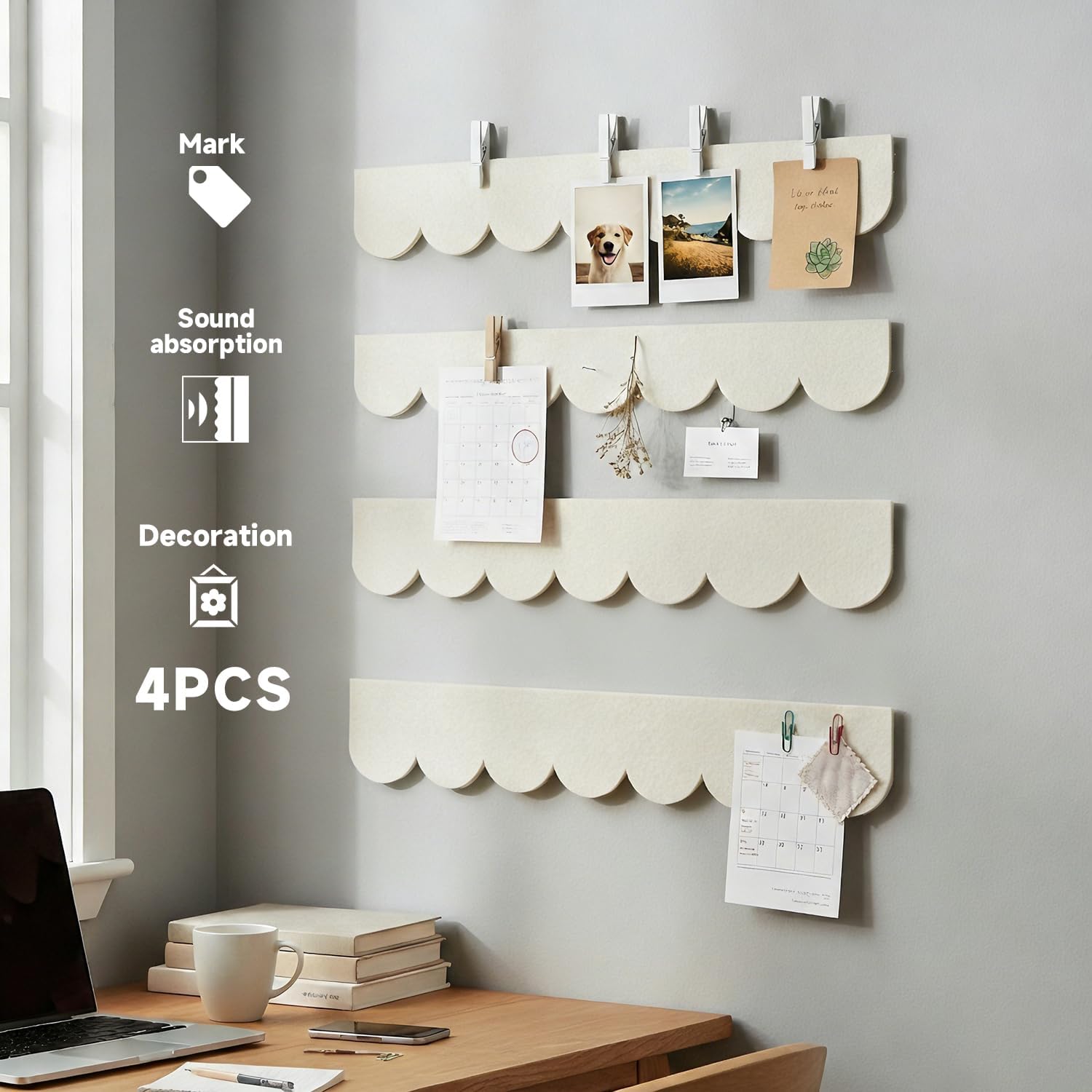 【Compact & Slim Design】Each felt strip features an ultra-slim 11.8"x2.36"x0.35"—create unique bulletin boards at home, office, or dorm to unleash your creativity and personalize any space. 【Premium Dense Felt Material】The high-density felt bonding design makes it easier for you to use the slats. It is also environmentally friendly, odorless and has a glossy surface. 【Versatile Multi-Use Organizer】Versatile Multi-Space Organizer, Customize layouts across bedrooms, offices, dorms, classrooms, vanities, and doors—decorate compact areas while maintaining perfect neatness. 【Customizable & Gift-Ready】Felt boards securely hold notes and memos, display photos and recipes for daily inspiration, hang keys and eyewear essentials, and organize jewelry like earrings, hair ties, and necklaces—transforming walls into creative decorative spaces.