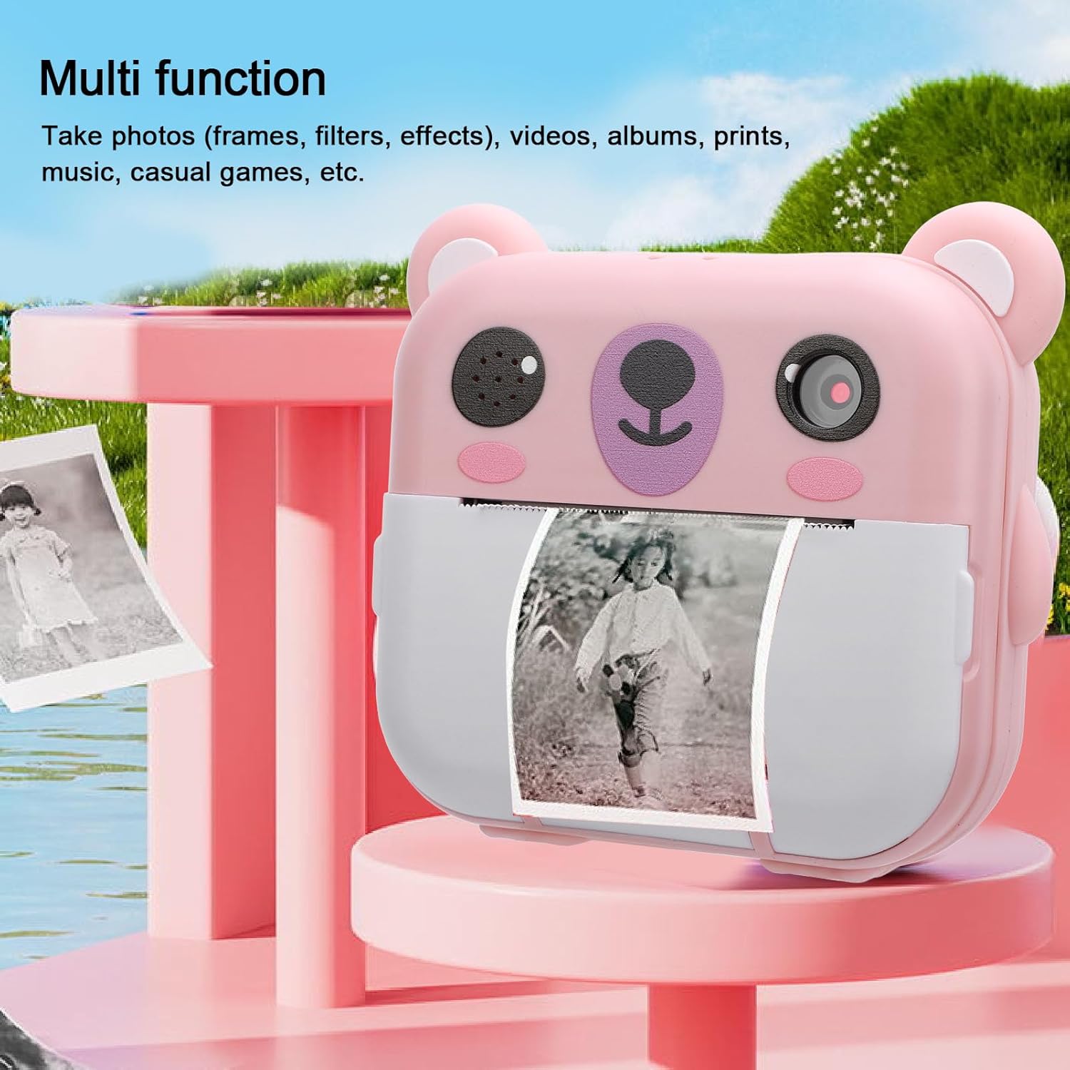 Spec: Item Type: Instant Print Camera Material: ABS Functions: Photo (Frame, Filter, Special Effects), Video, Album, Print, Music, Casual Games, Etc. Screen: 2 Inch 320x240 TFT Printing Technology: Grayscale Printing, Dot Mat Printing Camera Pixels: 1080P Storage: Supports Up To 64GB Small Memory Card (Excluded) Battery Capacity: Built In 1000mAh Li Ion Battery How to Use: Power on and use. Package List: 1 x Instant Print Camera 1 x Lanyard 1 x Data Cable 1 x Instruction Manual 3 x Photo Paper (Built In 1 Roll)