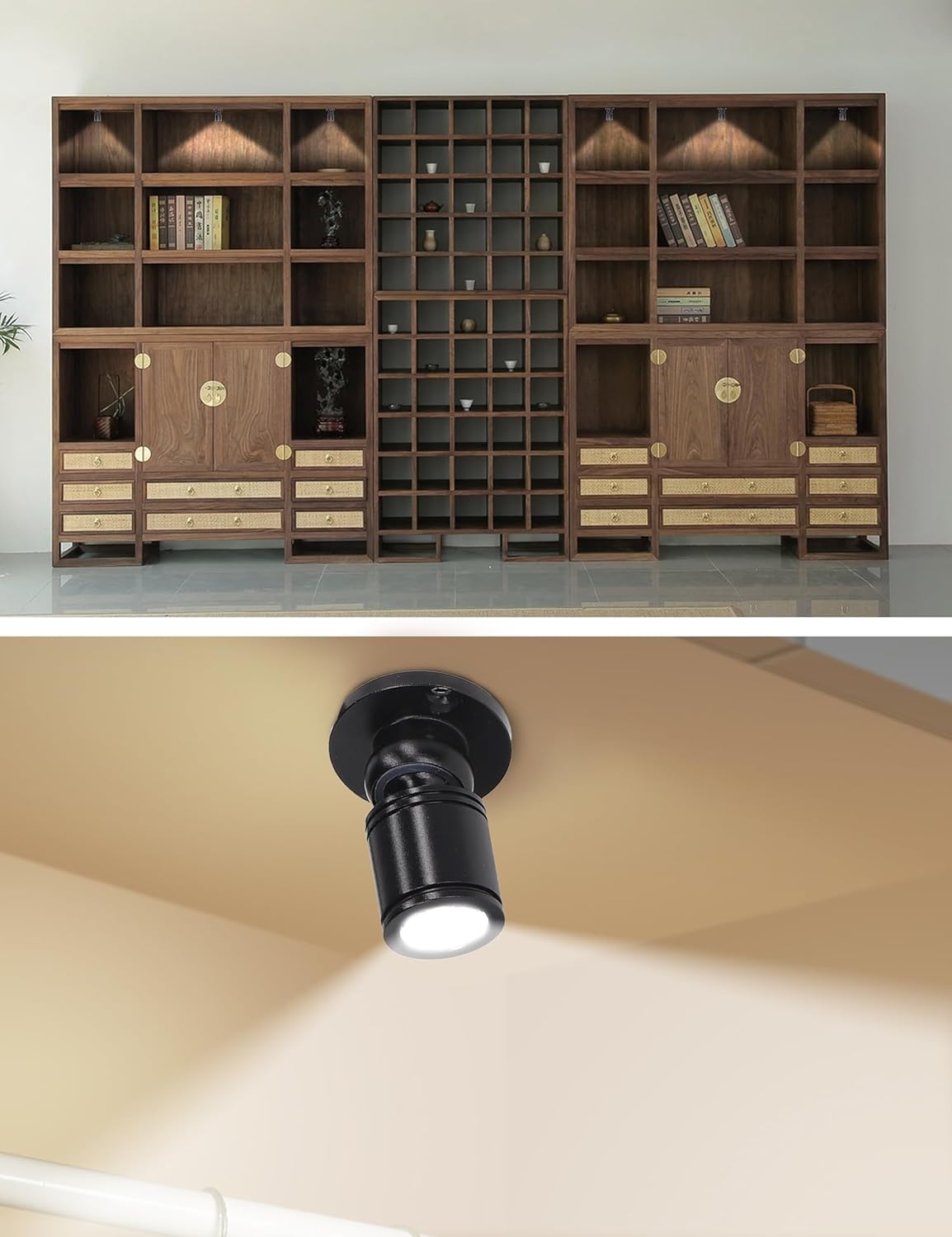 Spec: Item Type: Mini Spot Lights Material: Aluminum Product Size: Diameter Approx. 20mm/0.79in, Height Approx. 40mm/1.57in, Base Diameter Approx. 30mm/1.18in, Cable Length Approx. 2m/6.6ft Gross Weight: 85g/3oz Installation Method: Open Installation Fixed Power Supply: USB 5V How to Use: The installation is completed by screw fixing, and can be illuminated after connecting USB power. Package List: 1 x Mini Spotlight 1 x Glue Sticker 2 x Screws Notice: All data are measured manually, and there are certain errors in the measurement results.