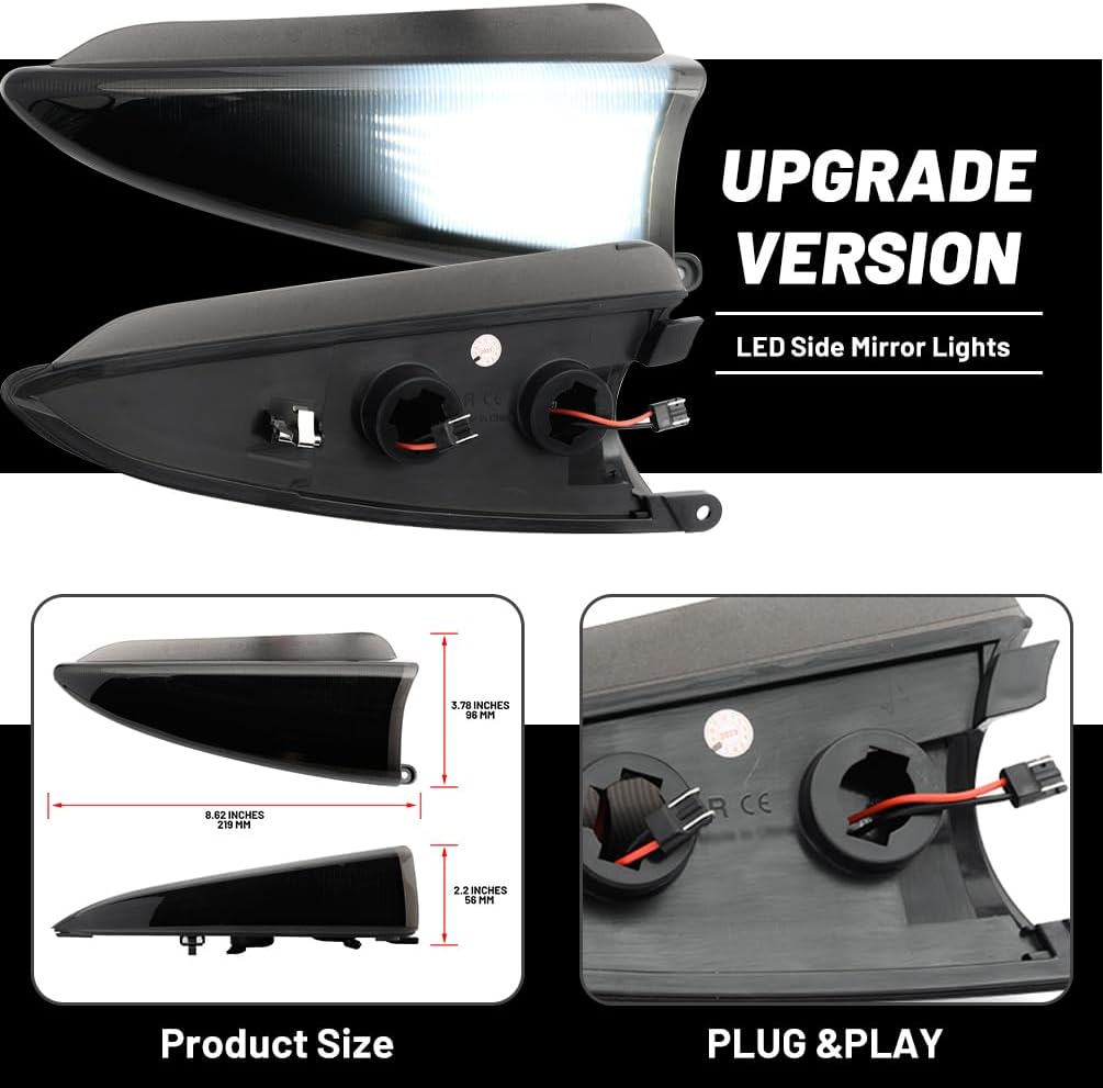 | Additional Features | Sequential Dynamic Amber LED Lighting for Turn Signal, White LED Lighting for Mirror Puddle Marker Lamps., Shockproof, Waterproof |