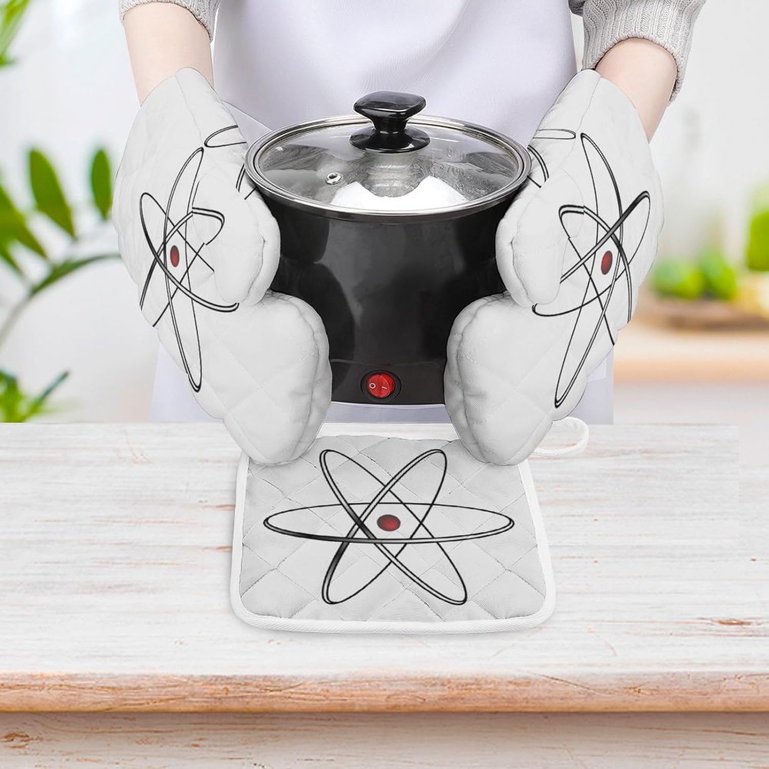 This 3-piece oven mitt and pot holder set is made of washable and reusable fabrics and is suitable for use when cooking and baking in the kitchen such as hot pots, barbecues, and microwave ovens.