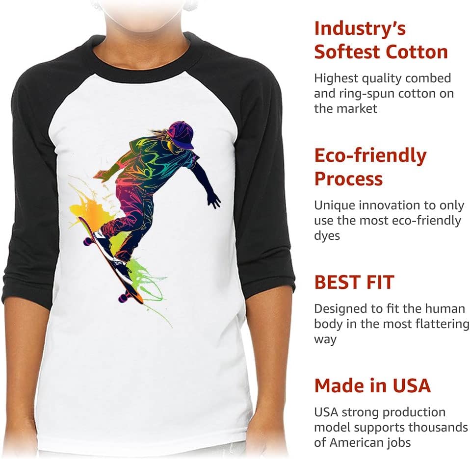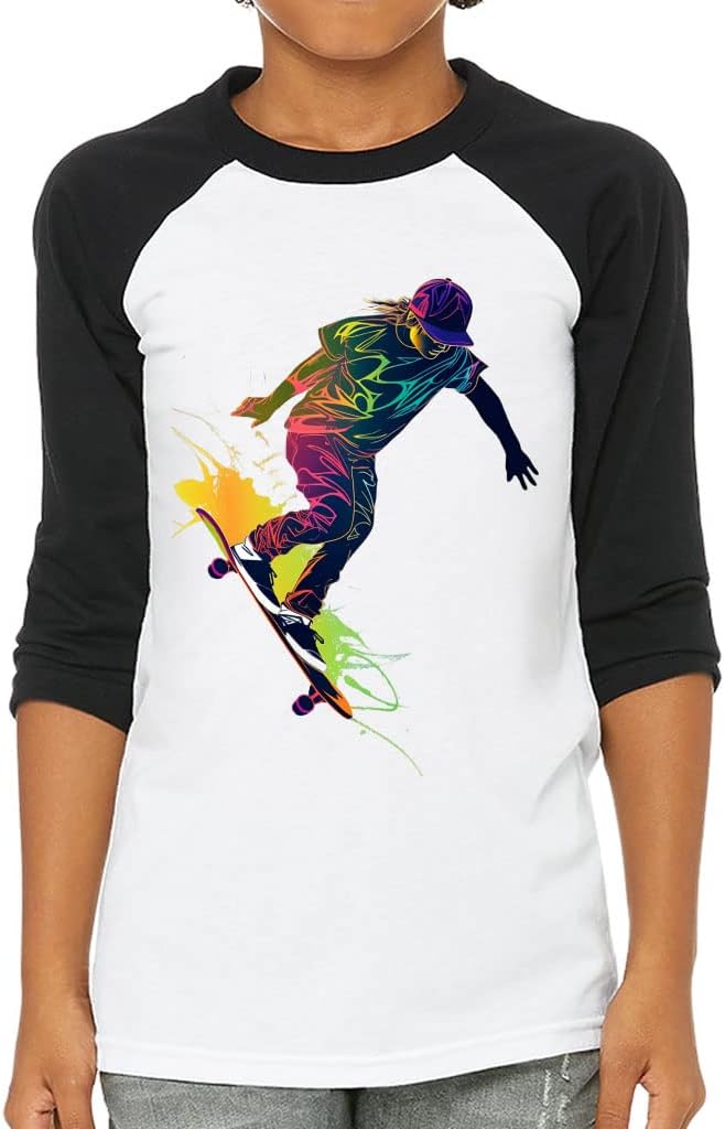 Skate Print Kids' Baseball T-Shirt has quality fabric and vibrant colors. It is ideal for sports, school, daily wear, or as a gift for your little one. Your kid will not only be comfortable moving but also pleased to know that they looks stylish. It is a durable and long-lasting graphic t-shirt with a comfortable fit and an easy-to-dress design, Graphic Art 3/4 Sleeve T-Shirt is the essential top in your active kid's favorite outfits.